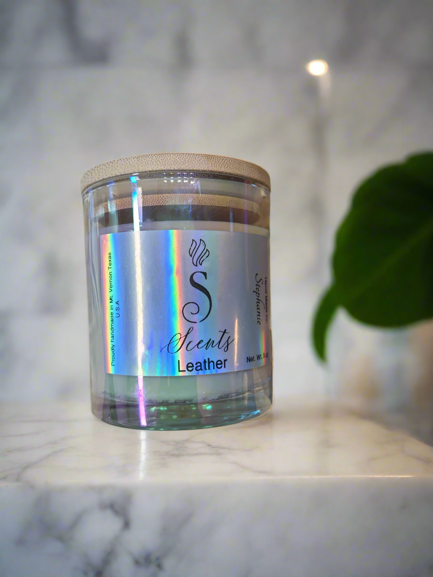 7 oz Glass Leather Iridescent Candle with Bambo Lid